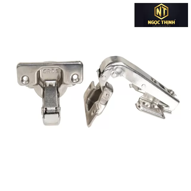 Bản lề cong: Là loại bản lề có cấu tạo từ bản lề cong và giảm chấn, sử dụng với 2 tủ liền kề có chung 1 vách.
