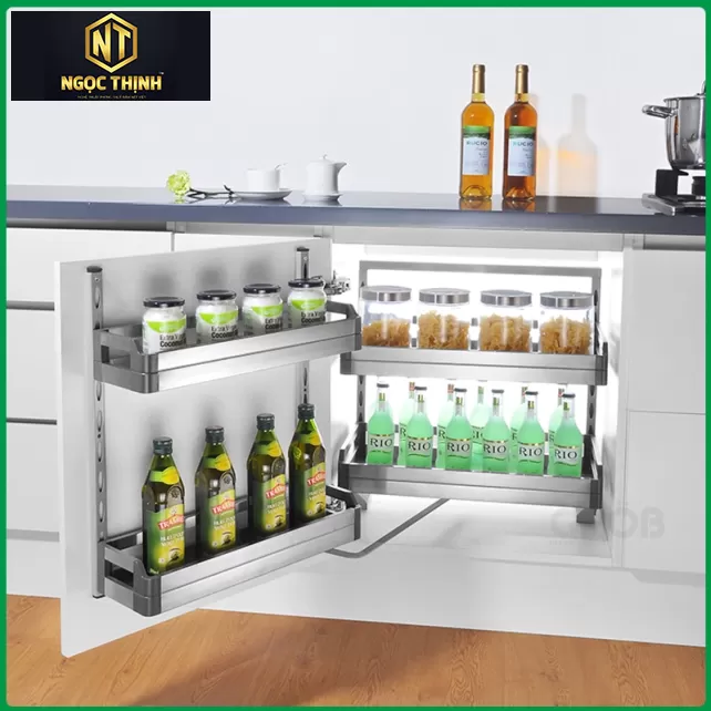- Các rá đựng được gắn trực tiếp vào cánh tủ và khung bắt trực tiếp âm tủ khiến cho phụ kiện thêm chắc chắn, với sức chứa trọng tải tương đối lớn